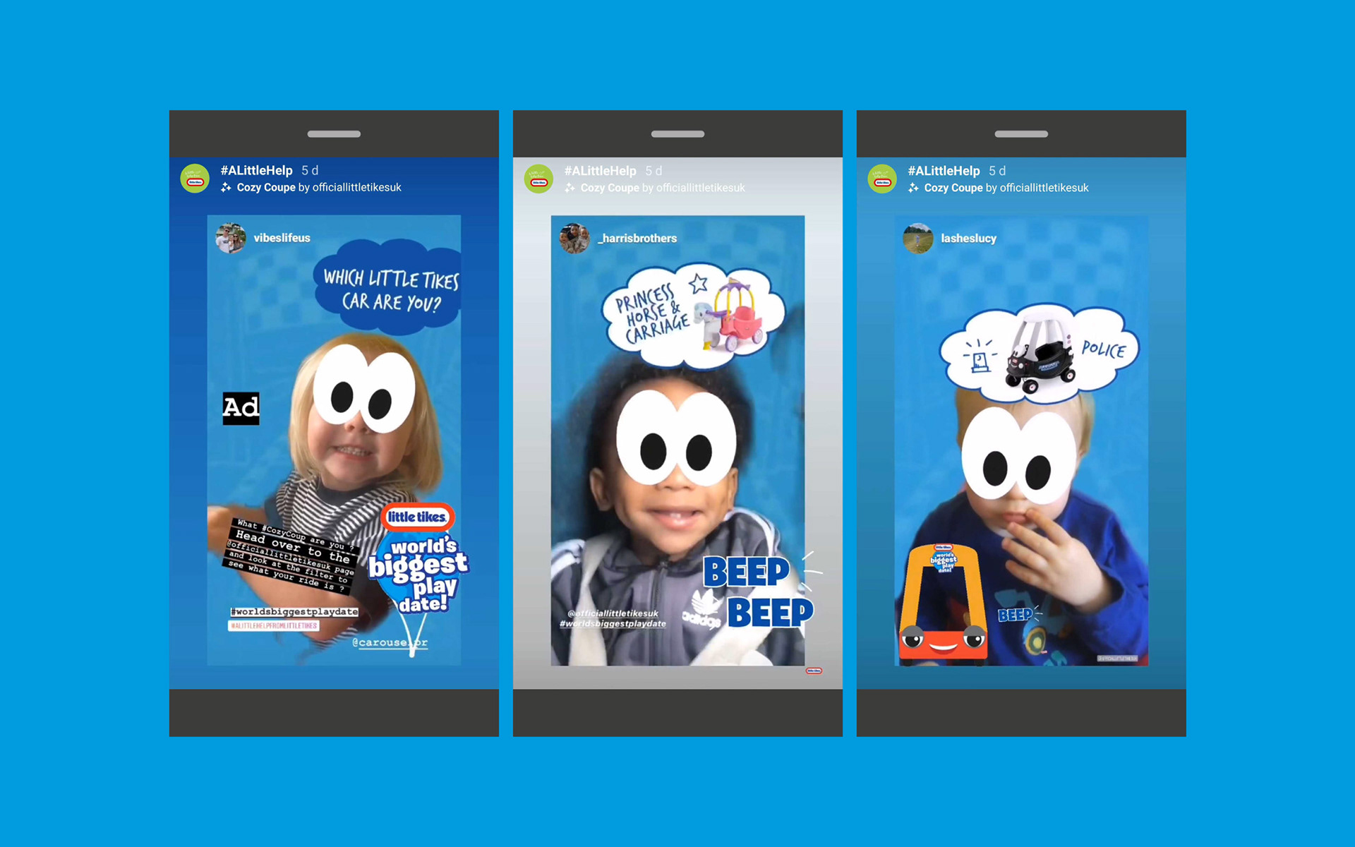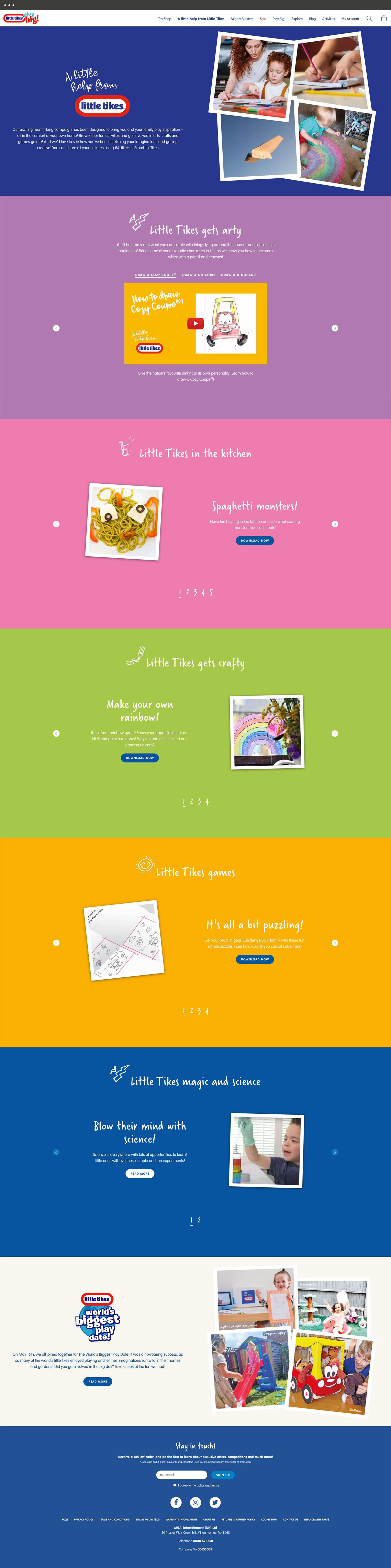 This year, The World’s Biggest Play Date celebration had to make changes due to the pandemic. Even though we couldn't gather in person, we still wanted to bring families together and create enjoyable memories. Since everyone was at home, we launched a digital campaign to provide families with ideas for playing at home. Little Tikes aimed to assist families with bored kids during the summer by introducing the ‘A Little Help From Little Tikes’ campaign. I was responsible for developing all the fun activities for the campaign. Additionally, I created interactive filters for Instagram to generate excitement. All the activities were easily printable at home, and I handled all the photography to support the campaign.